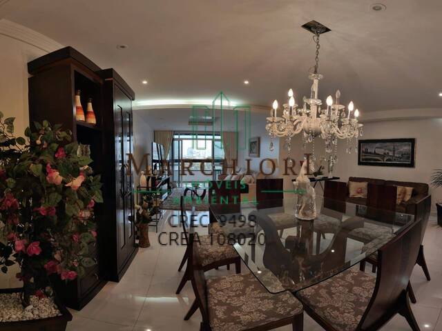 Apartamento com 5 quartos, 345m², 2 suites, 3 banheiros, dependencia de empregados, com 2 vagas de garagem, de frente para a rua, ótima localização, varanda com fechamento, em porcelanato, rebaixamento de gesso, iluminação em led, 1 apartamento por andar, elevador privativo, ventiladores de teto, lustres, fica a poucos metros da praia (Praia da Costa) com ambientes climatizados e armários embutidos, vista livre da cidade.